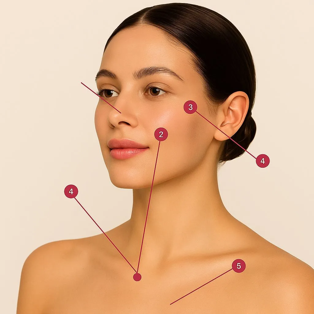 5. منتصف أعلى الصدر (منطقة بين الترقوتين) :
